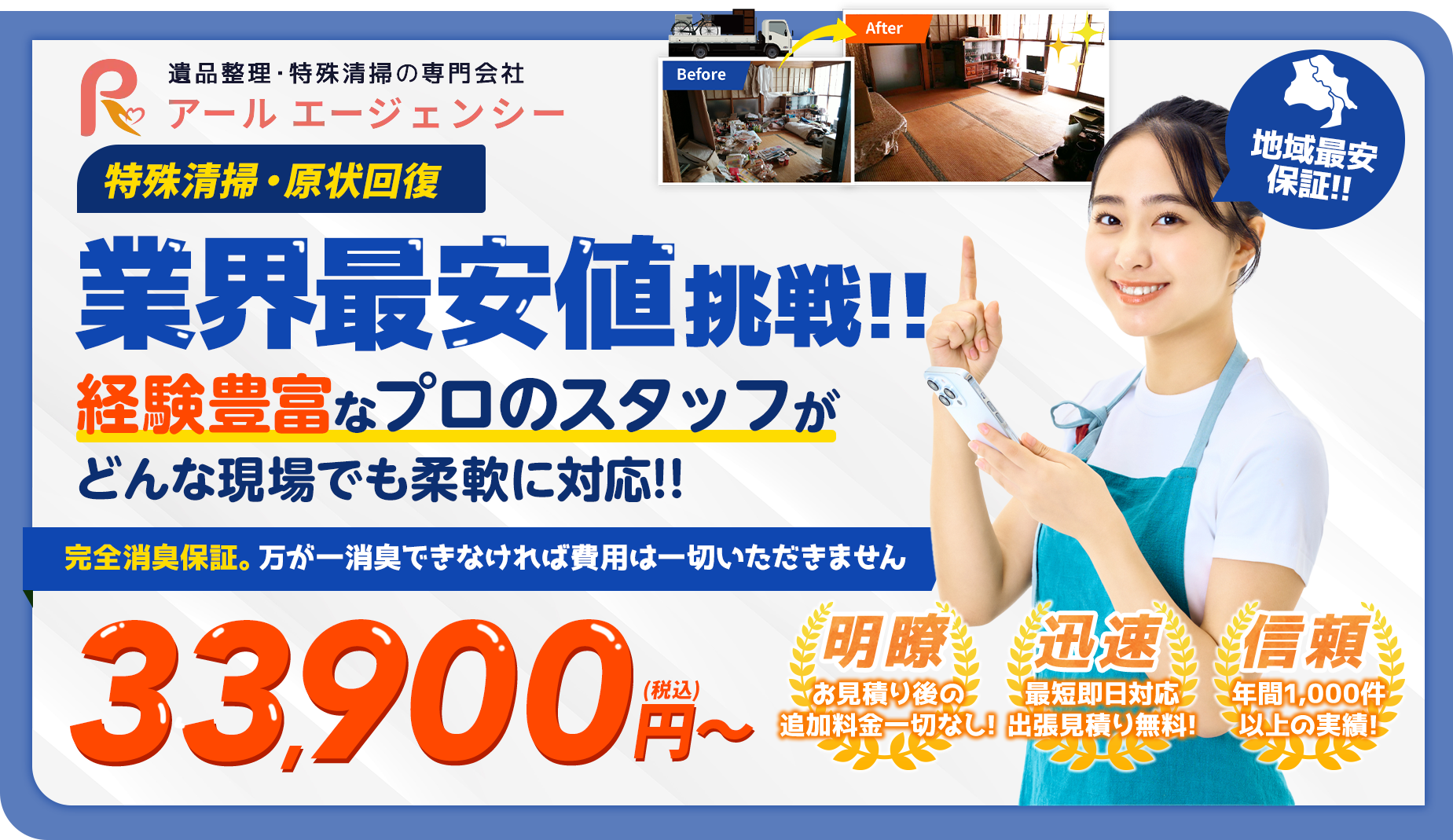 特殊清掃のことならアールエージェンシーにお任せください!現地見積り無料で即日お伺いいたします!