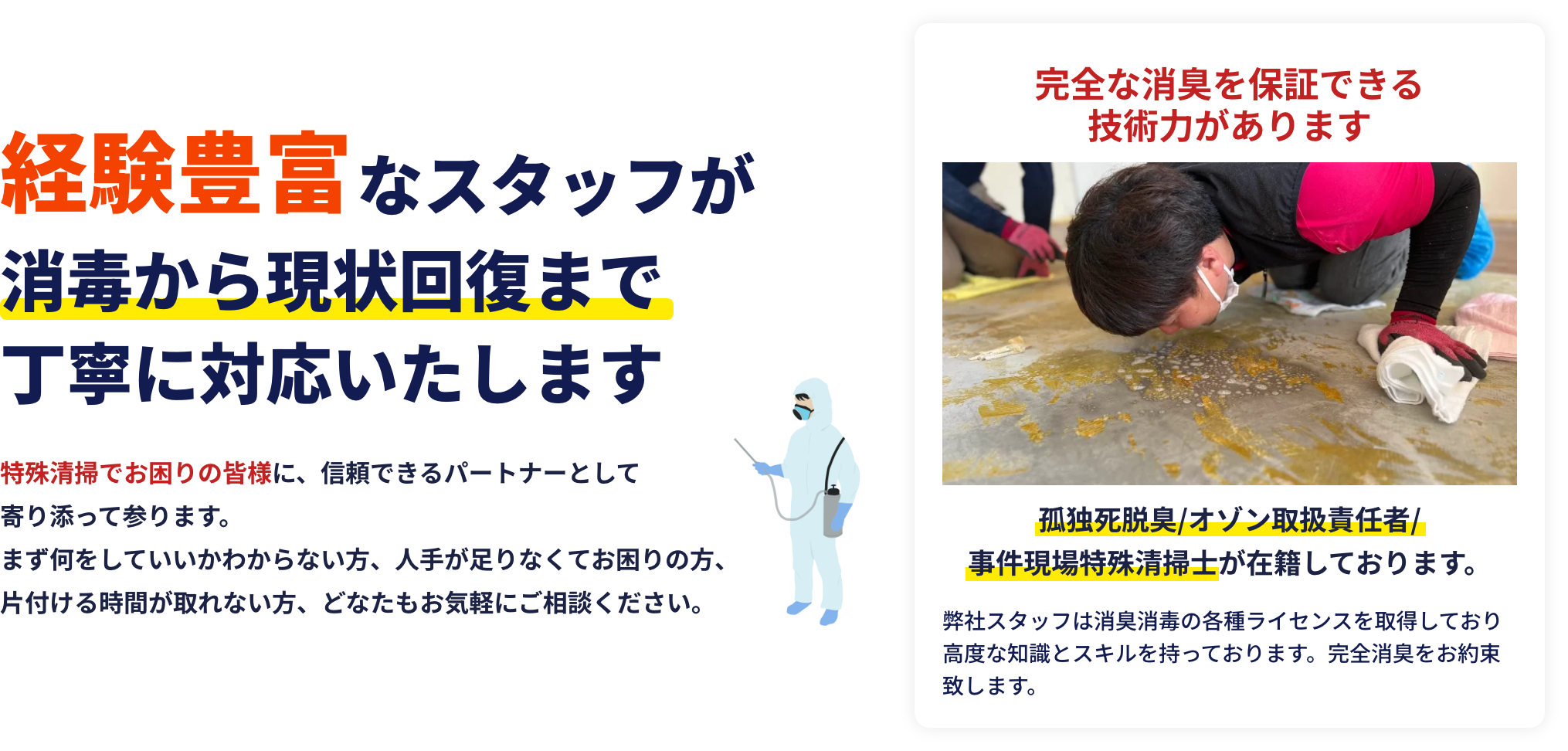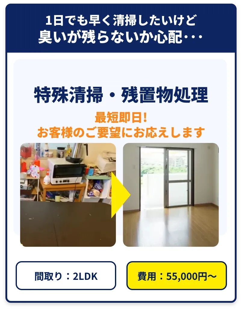 - 孤独死や事故死といった特殊な作業は対応は可能ですか?
